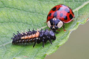 Marienkäfer mit Larve